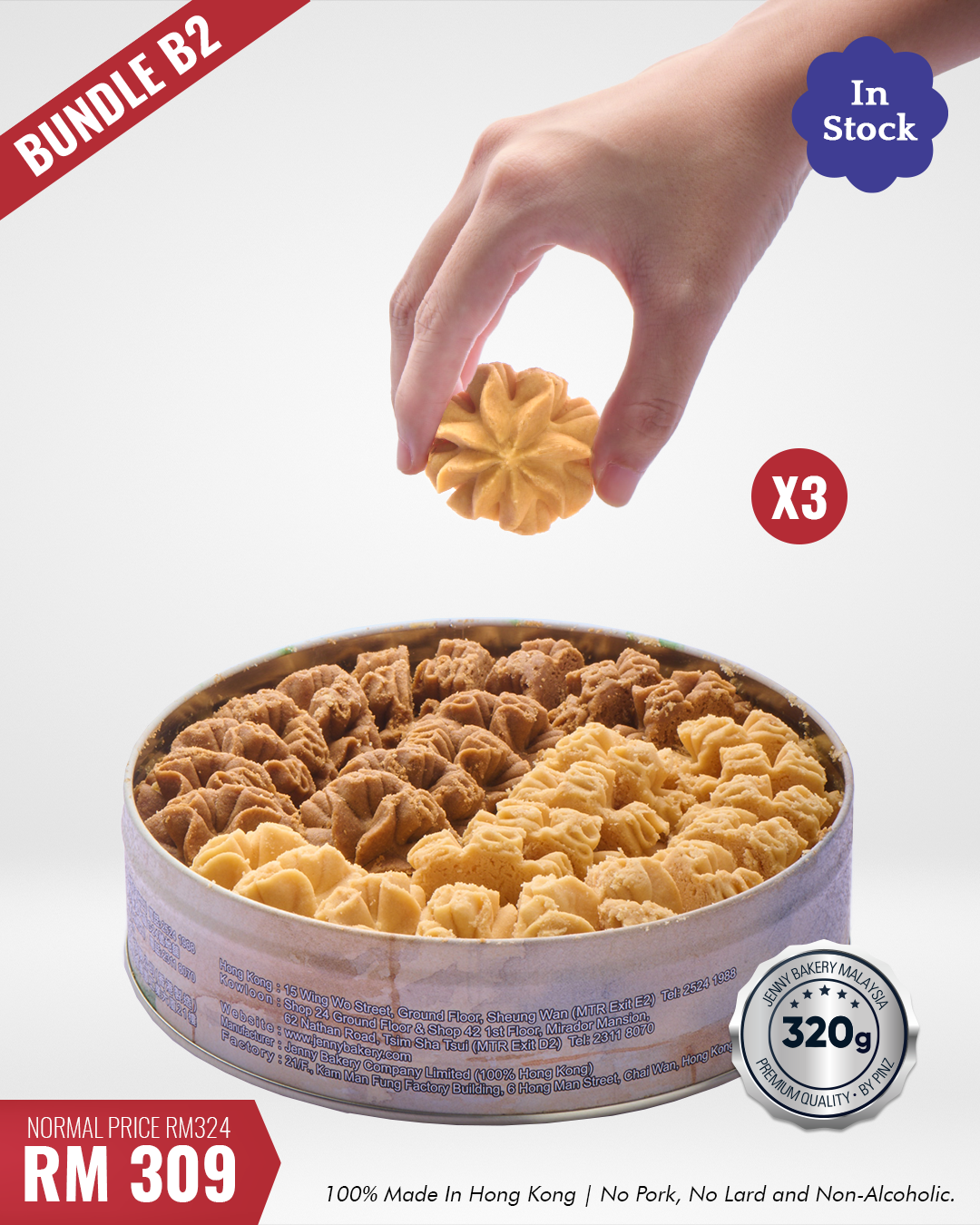 All cookies are 100% made in Hong Kong and being imported by Pinz – freshness guaranteed.